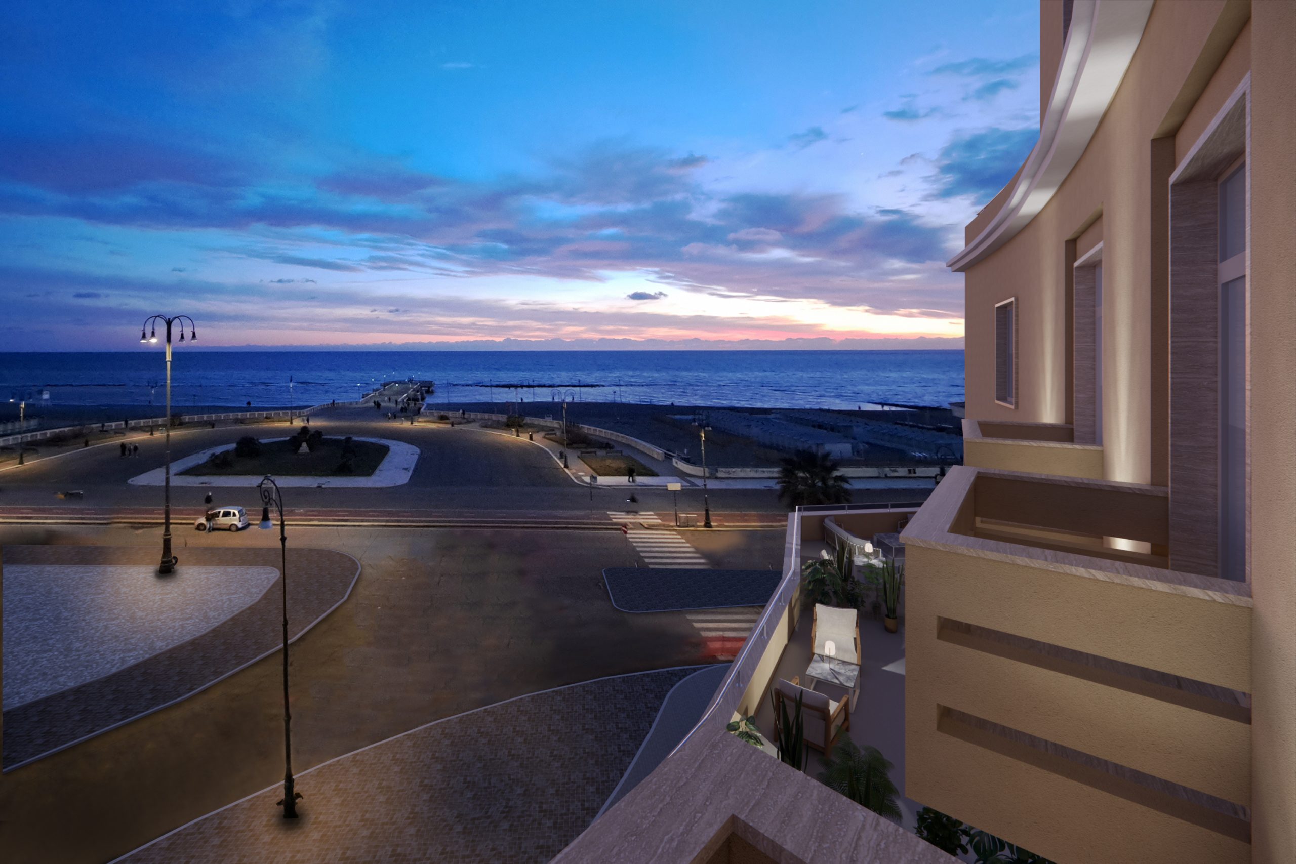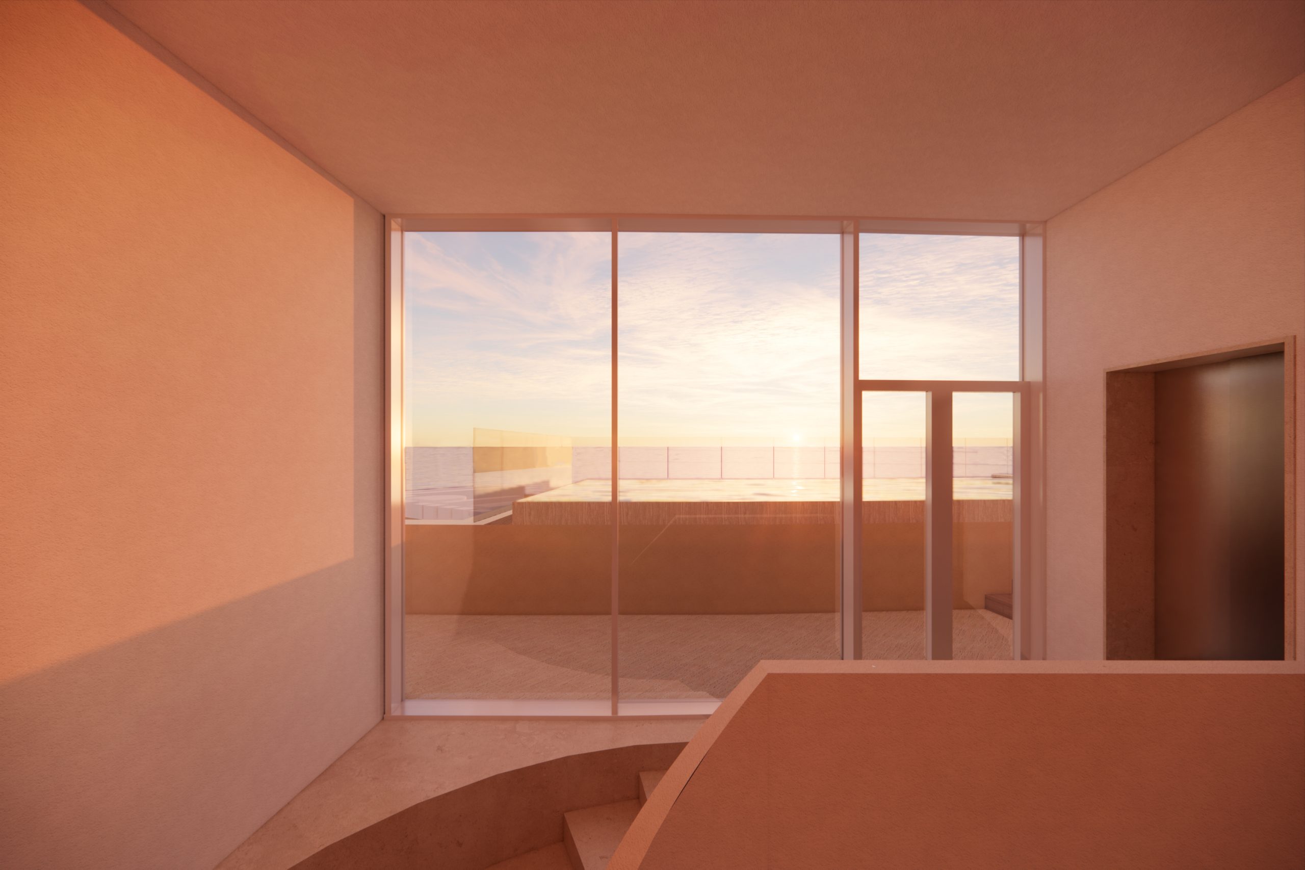 The project envisioned by the studio proposes the revival of a 1920s rationalist hotel in the heart of Lido di Ostia, a building that has long stood unused and is now ready to reclaim its symbolic role along the seafront. The design draws inspiration from the essential geometries of Italian Rationalism, reinterpreting them through a contemporary language that engages with the sea, the beaches, and the distinctive light of this Roman coastline.