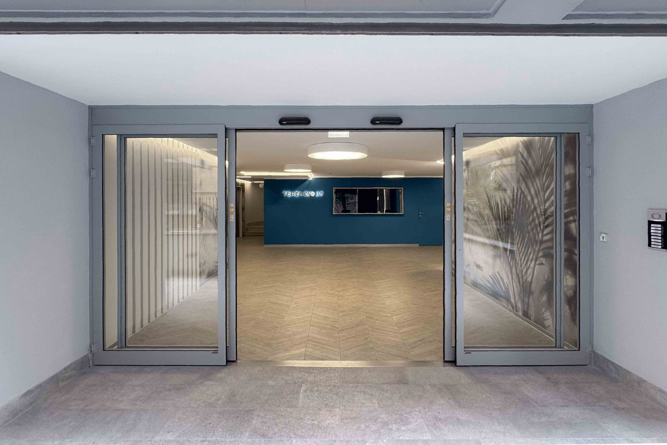 of 1970s architecture. The project also includes the installation of an elevator with dedicated access, while the overall restyling began with the entrance hall and will progressively extend to the upper floors.